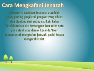 Menjagamemelihara maruah dan kehormatannya serta melindungi aib jenazah HIKMAT Islam mementingkan kebersihan Menghormati manusia sebagi makhluk yang dimuliakan oleh Allah swt. Sediakan 5 utas tali yang dihamparkan di tempat pembaringan. Ini karena mengurus jenazah adalah wajib bagi seluruh atau sebagian orang di sekitarnya saat mereka masih hidup.